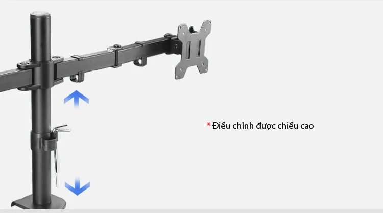Thiết kế chân đế bàn chắc chắn giúp sản phẩm có thể đứng vững chắc không bị rung lắc khi sử dụng. Chiếc tay đỡ màn hình này có 4 cánh tay, ở mỗi cánh có các khớp giúp sản phẩm hoạt động linh hoạt hơn. Chiều dài mỗi cánh tay là 35cm