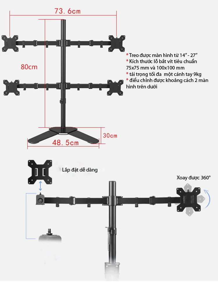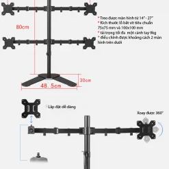Giá treo 4 màn hình để bàn nhập khẩu đa năng