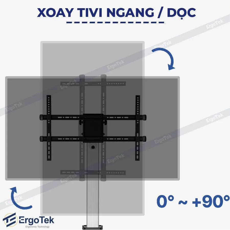 Khác với các dòng giá treo di động thông thường chỉ để tivi nằm ngang, ErgoTek E2290 cho phép bạn xoay màn hình từ ngang sang dọc một cách dễ dàng. Đây là tính năng tuyệt vời dành cho các nhu cầu: