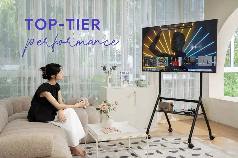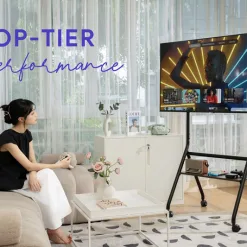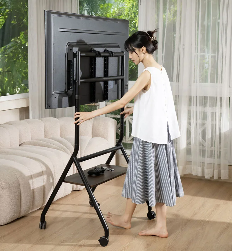HyperWork Era Stand TVC03 được trang bị bánh xe chịu lực, giúp người dùng dễ dàng di chuyển giá treo TV đến mọi vị trí mong muốn trong không gian phòng. Thiết kế dạng đứng cao với chiều cao tổng thể 1615 mm cùng kích thước chân đế 725 x 635 mm tạo sự vững chắc tối ưu.