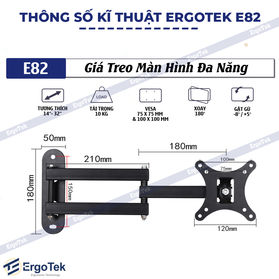 GIÁ TREO MÀN HÌNH / TIVI XOAY ĐA NĂNG ERGOTEK E82 (14 – 32 INCH)