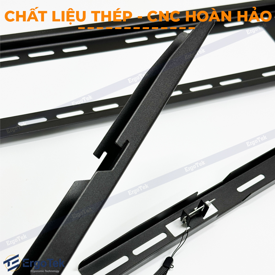 Khác với các dòng giá treo dập khuôn đại trà, Ergotek E97 được gia công bằng công nghệ cắt CNC. Các chi tiết sắc sảo, khớp nối chuẩn xác từng milimet, giúp việc lắp đặt tivi cỡ đại trở nên mượt mà và không có sai số.