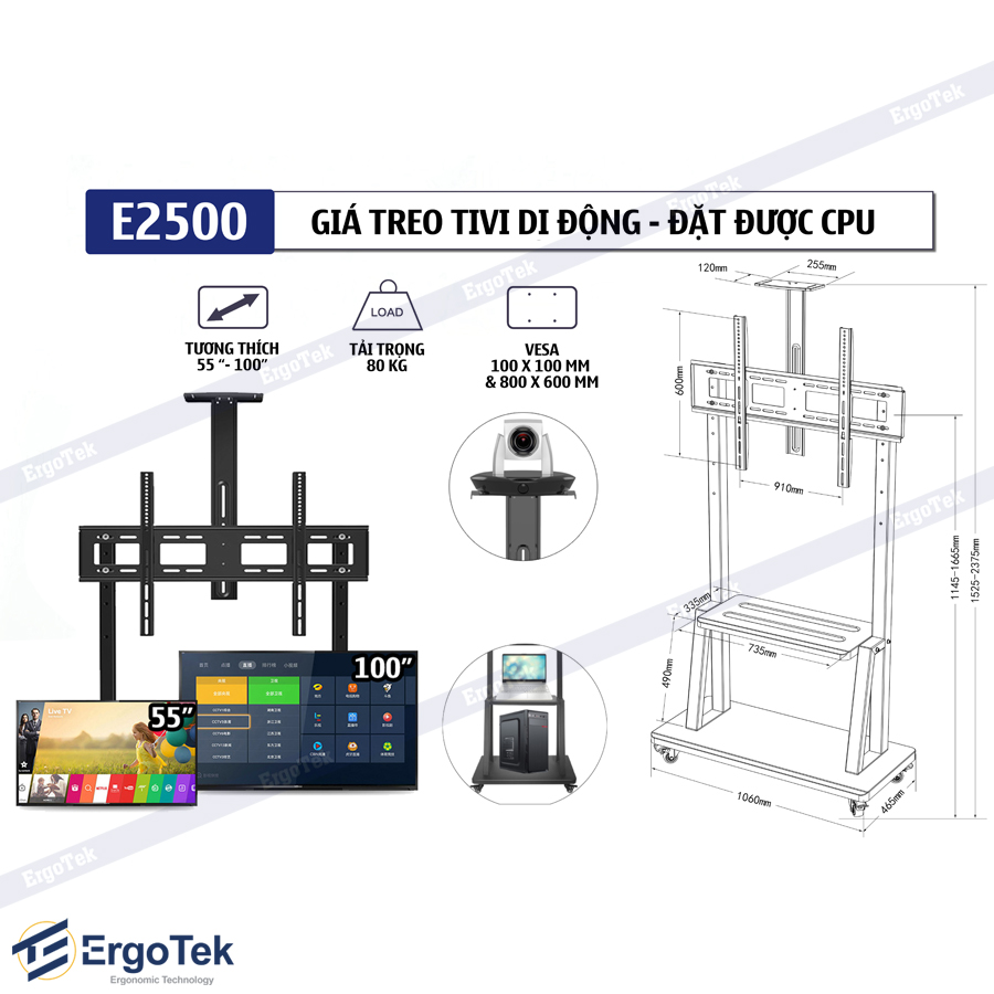 GIÁ TREO TIVI DI ĐỘNG SIÊU LỚN ERGOTEK E2500 (55 – 100 INCH) – ĐẲNG CẤP VÀ VỮNG CHÃI
