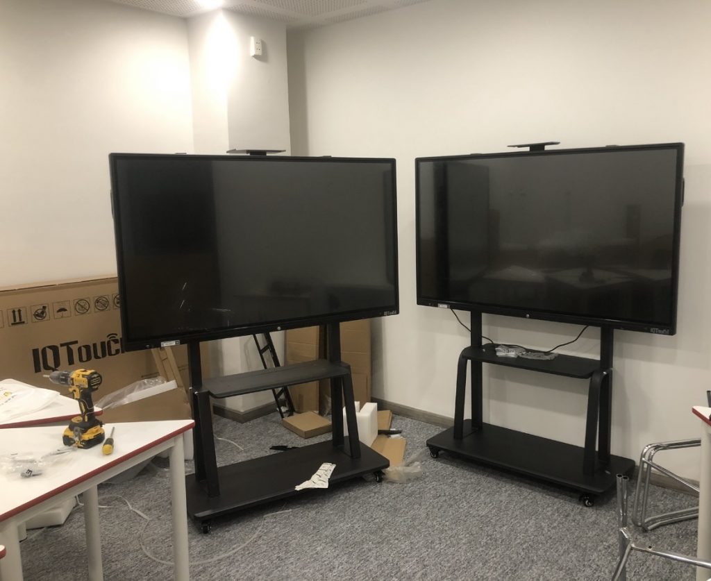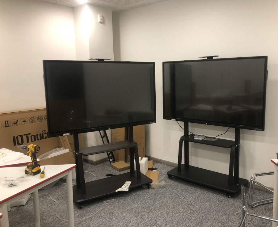 Dù treo tivi siêu lớn, bạn vẫn có thể di chuyển nhẹ nhàng nhờ hệ thống bánh xe chịu lực xoay 360 độ. Các bánh xe đều có chốt khóa an toàn để cố định giá treo vững vàng tại vị trí mong muốn. Đặc biệt, giá treo đi kèm khay để laptop và khay treo camera hội nghị, giúp bạn dễ dàng tổ chức các buổi họp trực tuyến hoặc thuyết trình chuyên nghiệp.