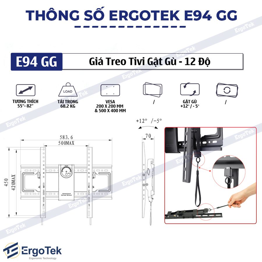 GIÁ TREO TIVI GẬT GÙ ERGOTEK E94 (55 – 82 INCH) – NGHIÊNG 12 ĐỘ