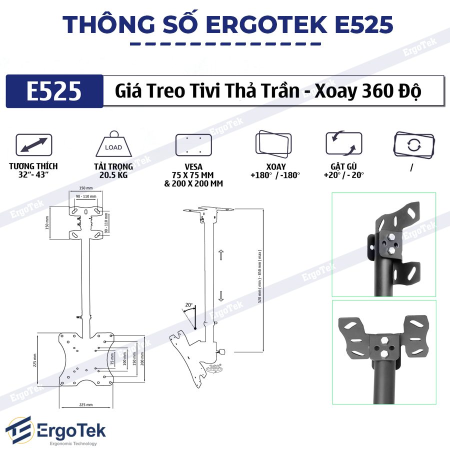 GIÁ TREO TIVI THẢ TRẦN ERGOTEK E525 (32 – 43 INCH) – XOAY 360 ĐỘ CHUYÊN DỤNG