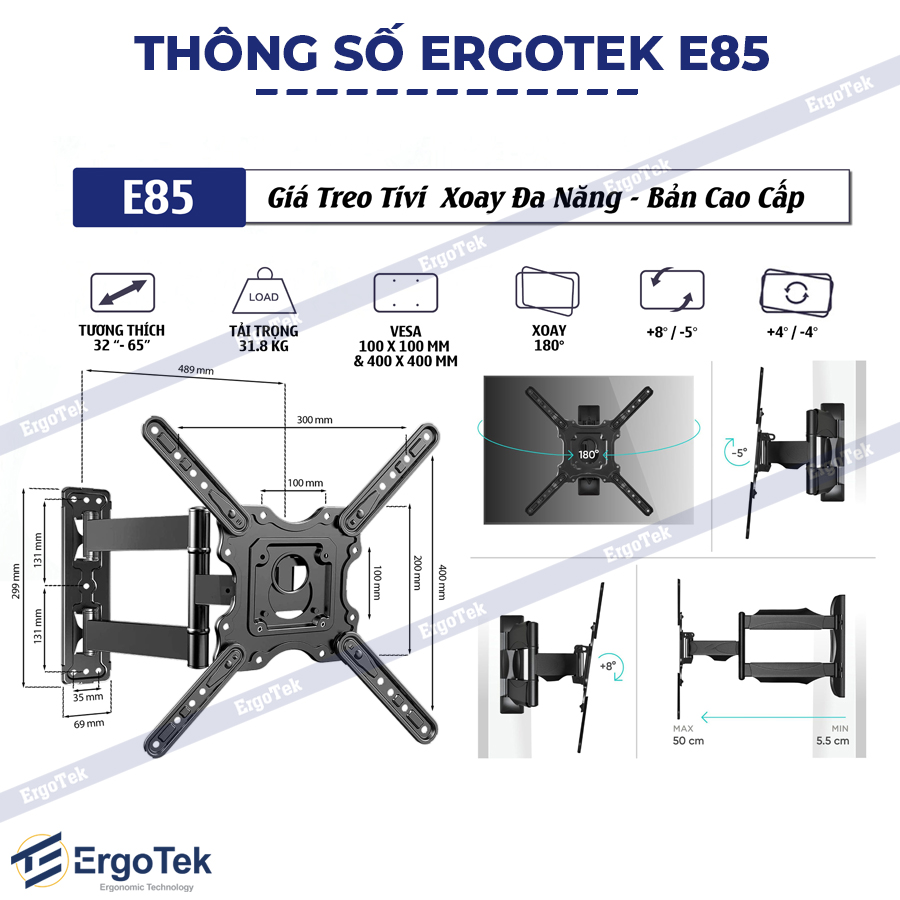 GIÁ TREO TIVI XOAY GÓC ĐA NĂNG ERGOTEK E85 (32 – 65 INCH)