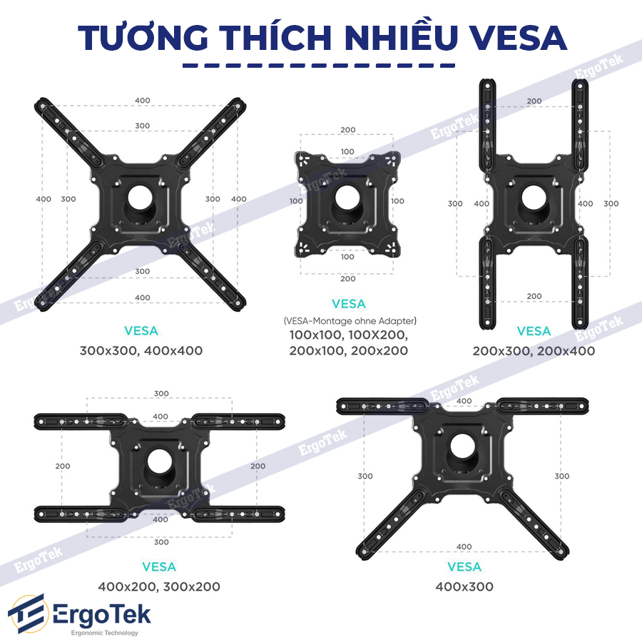Tương thích chuẩn VESA: 100x100mm đến 400x400mm