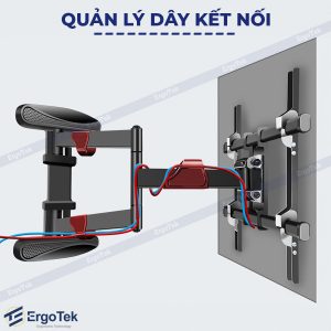 Hệ thống quản lý dây cáp gọn gàng: Tích hợp các ốp nhựa dọc theo cánh tay treo để đi dây nguồn, dây cáp HDMI, giúp góc giải trí luôn sạch sẽ, thẩm mỹ và an toàn.