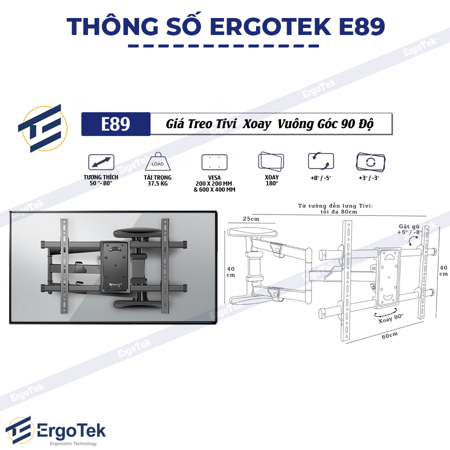 GIÁ TREO TIVI XOAY VUÔNG GÓC ERGOTEK E89 (50 – 80 INCH)